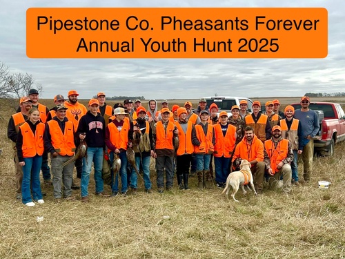Pipestone County Pheasants Forever also holds a Youth Mentor Hunt every October for the purpose of teaching them gun safety, hunting etiquette, and the importance of conservation and wildlife habitat.